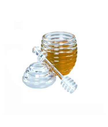Sweeten things up - store and serve honey in this charming clear beehive shaped honey pot with dipper. Its versatile design makes this a perfect match with any table or kitchen style. Made of durable acrylic. Jar - 5 inches h., Dipper - 5.5 inches